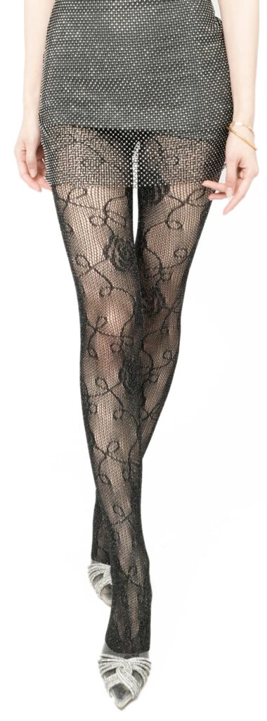 Make a bold and sophisticated statement with our unique metallic rose jacquard tights. Consequently, these are not your ordinary hosiery. Moreover, the intricate floral design is expertly woven into the fabric for a truly luxurious feel.