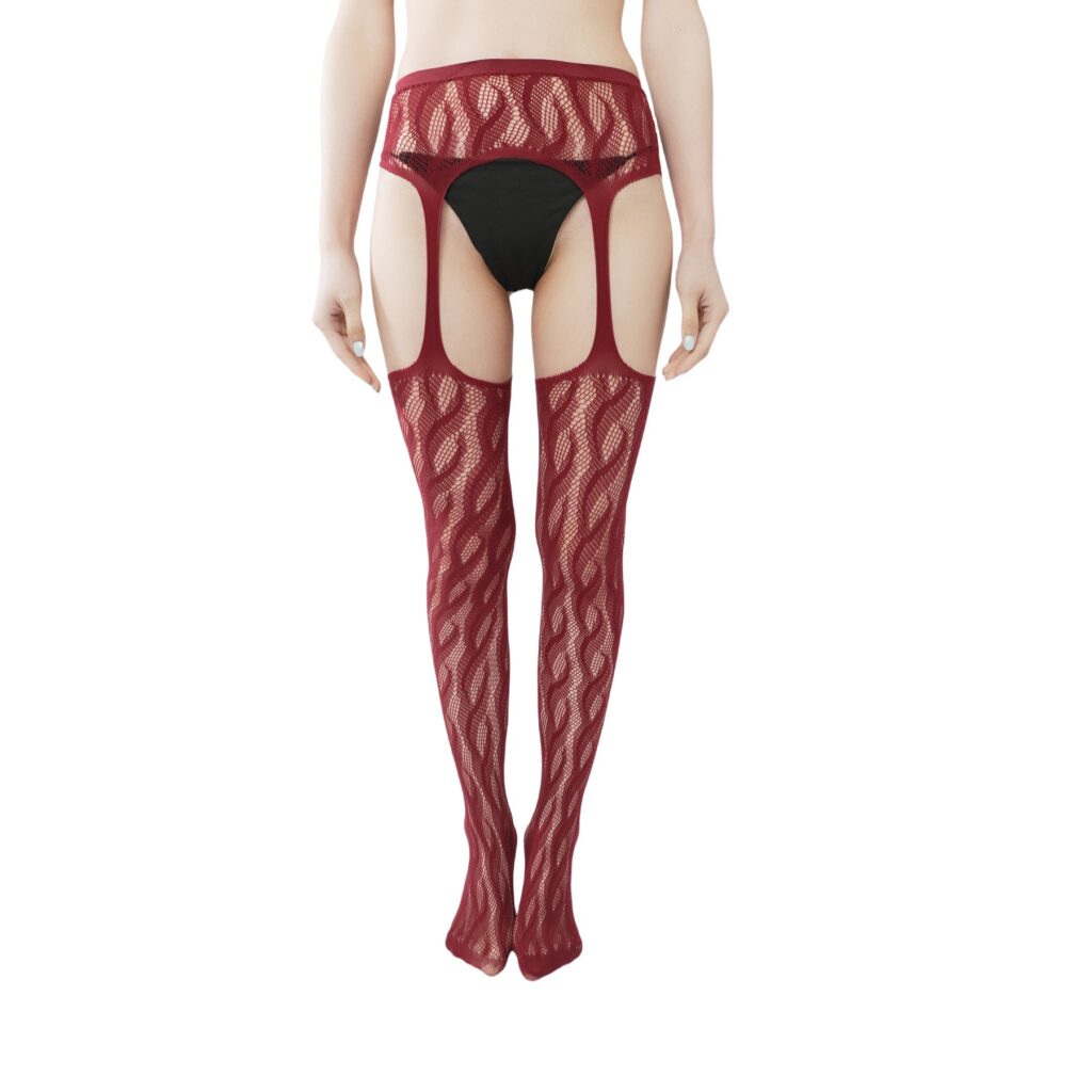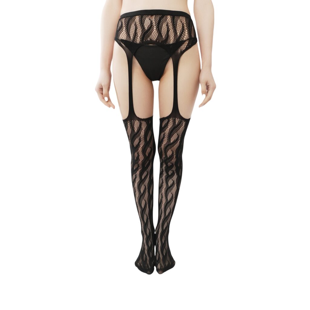 Additionally, these luxurious stockings are crafted with a classic four-strap garter belt and an open-crotch design. Therefore, they offer both unparalleled allure and practical convenience. For instance, pair these statement tights with lingerie for a timelessly sexy look that is both artistic and provocative.