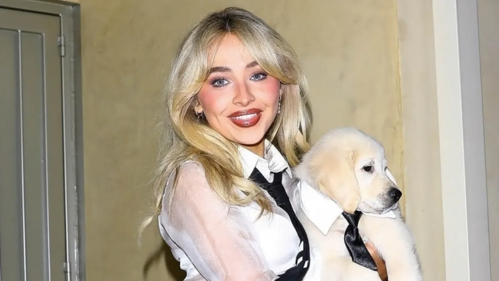 Following the release of her latest album, Man’s Best Friend, Sabrina Carpenter is embracing the style of the era. On August 29, after grabbing dinner at Alba in Los Angeles, she was spotted twinning with her adorable puppy. Meanwhile, Carpenter, styled by Jared Ellner, rocked a head-to-toe Thom Browne look. In contrast, her furry companion sported a simple black tie, adding a sweet touch to the ensemble.