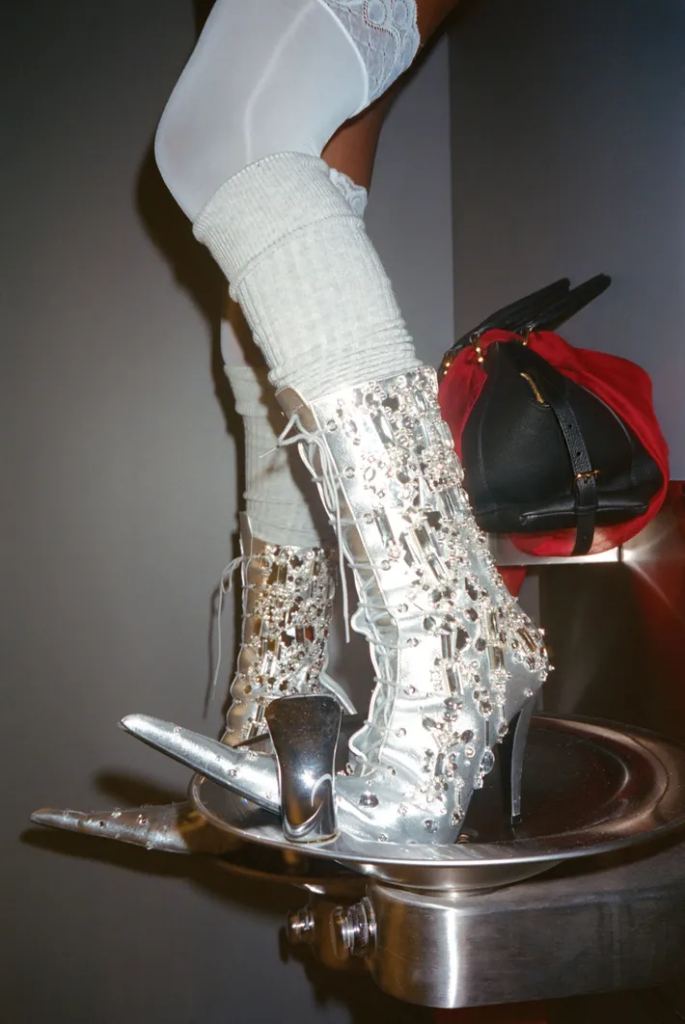 These Dior heels radiate major sex appeal. However, pairing them with a demure Sandy Liang sock instantly softens the vibe. As a result, the look feels balanced and highlights a touch of sweetness.
