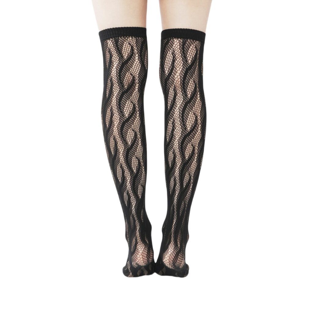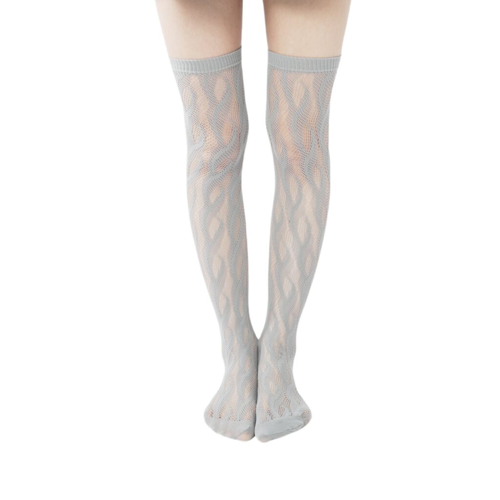Feather Jacquard Fishnet Thigh Highs ~ Elegant Stay-Up Stockings