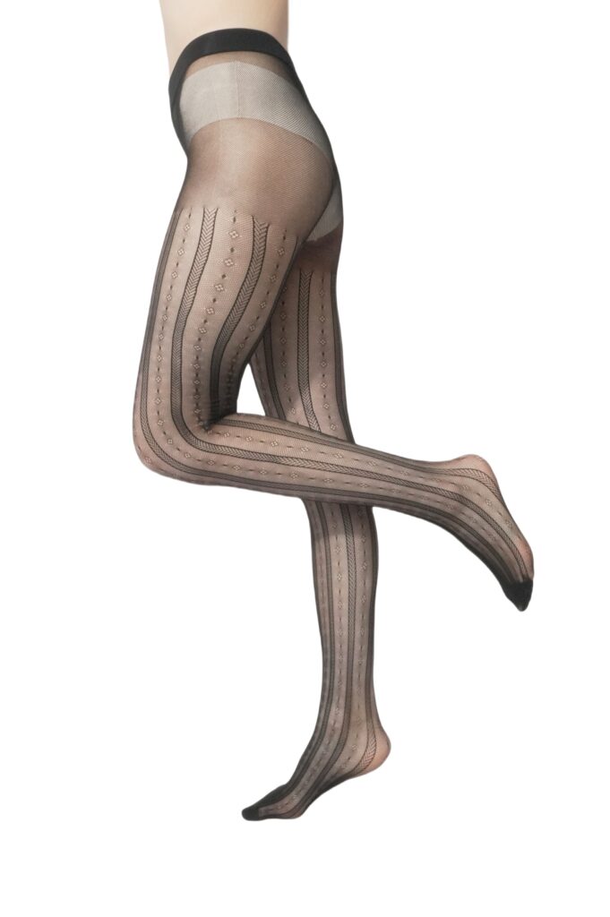 Slimming Floral Stripe Tights | Delicate Micro-Mesh Stockings