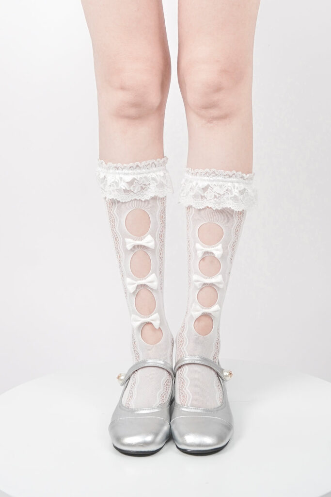 Lace Bow Cut-Out Knee High Stockings | Vintage Lace Stockings for Women